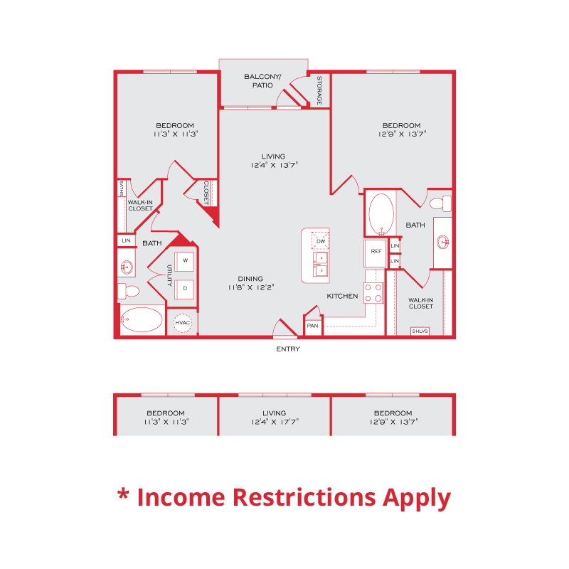 Apartment Model: A3.P8From $1,1251 Bedroom, 1 Bath, 748 sq ftAvailable Now![]()