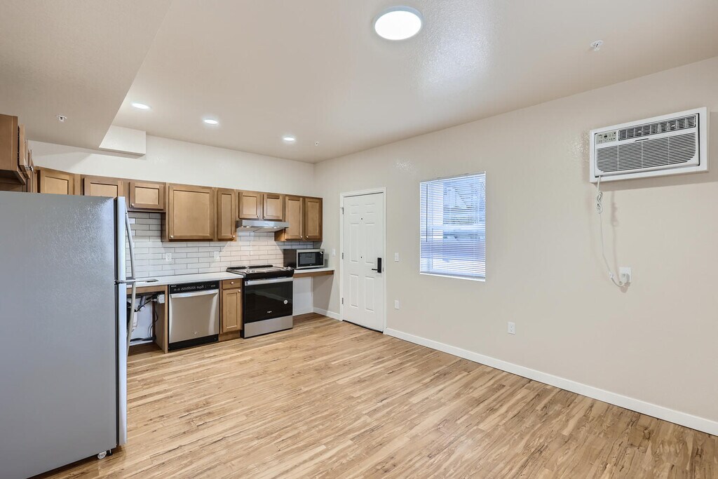 Discover contemporary living in Lakewood at the crossroads of 14th and Carr. This newly built 2023 community offers stylish 1-bedroom, 1-bathroom apartments with stainless steel appliances, air conditioning, and thoughtfully designed, functional floor plans. ADA-accessible options are available, ensuring comfort and convenience for all residents. Community amenities include an elevator, on-site laundry facilities, and inclusive utilities (electricity excluded).