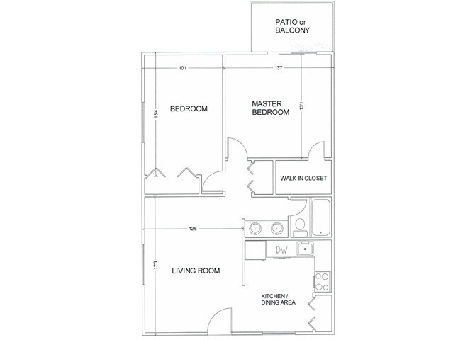 TWO BEDROOM/ONE BATH - CARRIAGE HILL - Floorplan 1
