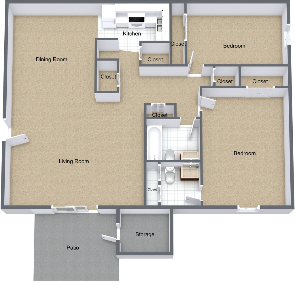 3 Beds, 2 Baths, 1230 sq ftModel Gallery