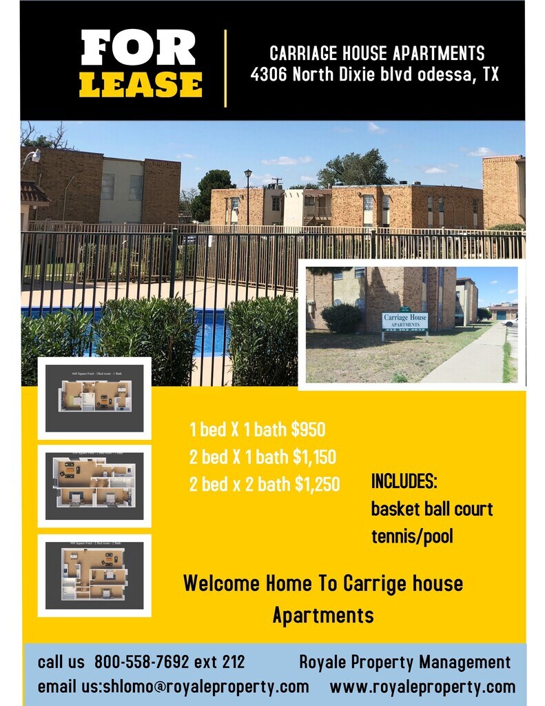 Pet Friendly. Pool and tennis/ basketball court. Onsite laundry.