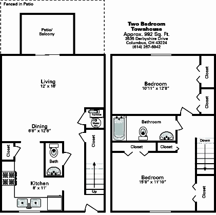 Apartment Model: 2BR TH2 Bedroom, 1.5 Bath, 992 sq ftUnavailable2BR TH - Floorplan 1 3 Bedrooms