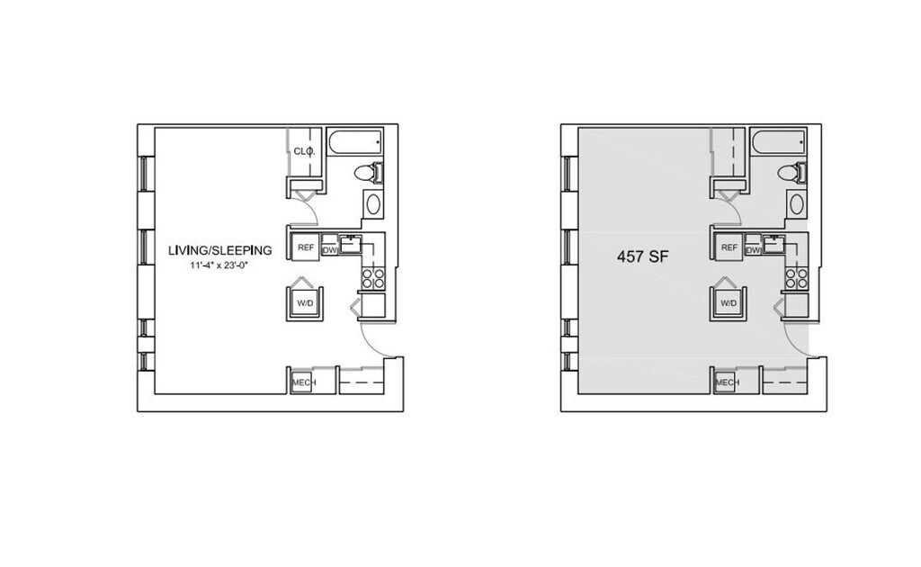 S2 - Floorplan 1 Apartment Unit: A-211Apartment Model: S2$1,489Studio, 1 Bath, 393 sq ftAvailable NowFloorplansPhotos![]()