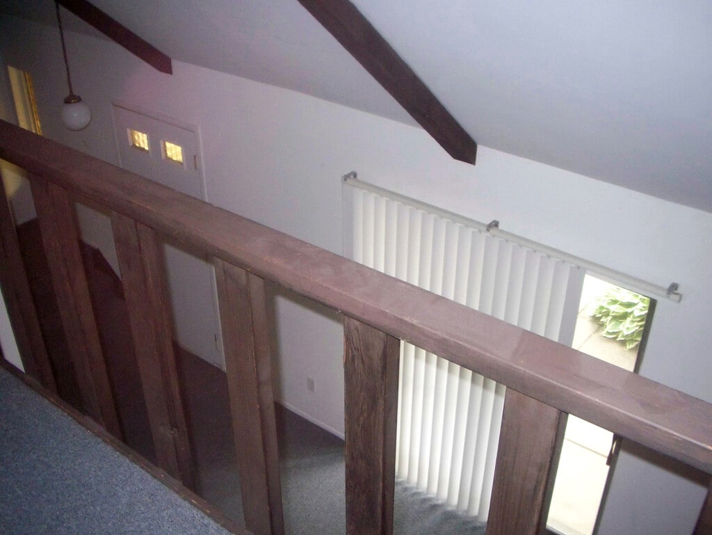 In the heart of downtown Royal Oak. Pool in courtyard. Unique, 2-story apt - bedroom, bath is upstairs. Kitchen, living room is on main floor. One bedroom apt perfect for young professional. Bedroom is loft style, with railing that looks onto the living room below. Slanted ceiling with wood beams. This apt has balcony off of the bedroom upstairs. Carpeting throughout. A gem in the heart of Royal Oak. Apt comes with own parking spot. Laundry room in complex.