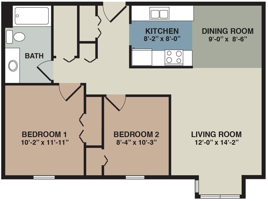 2B - 2 Bedroom Large - Floorplan 1 Apartment Unit: 210Apartment Model: 2B - 2 Bedroom Large$1,1802 Bedroom, 1 Bath, 892 sq ftAvailable NowApartment Unit: 310Apartment Model: 2B - 2 Bedroom Large$1,2352 Bedroom, 1 Bath, 892 sq ftAvailable December 1, 20252A - 2 Bedroom Standard