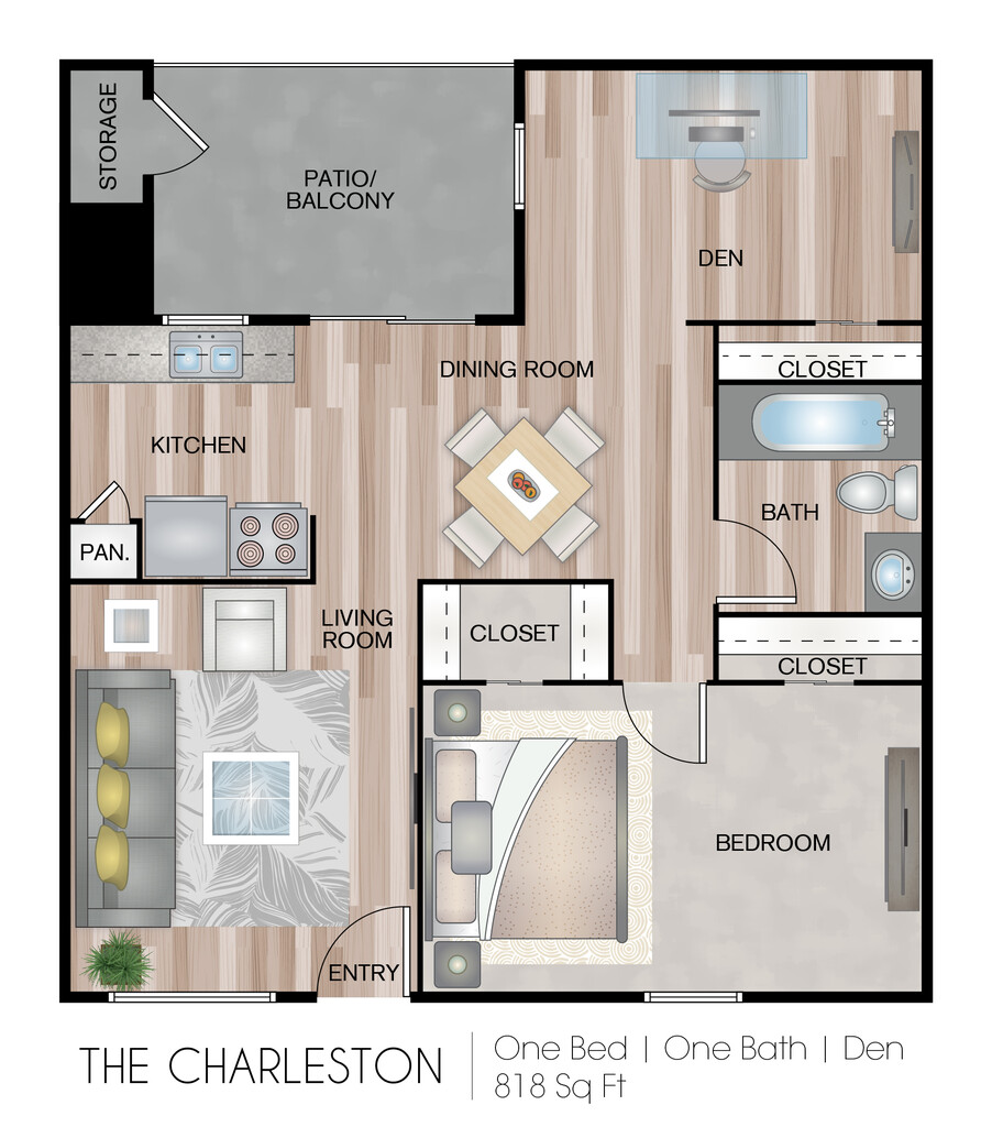 Apartment Model: The CharlestonFrom $9952 Bedroom, 1 Bath, 818 sq ftAvailable Now![]()