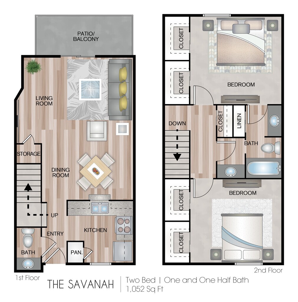 2 Beds, 2 Baths, 1052 sq ftAvailable NowModel Gallery