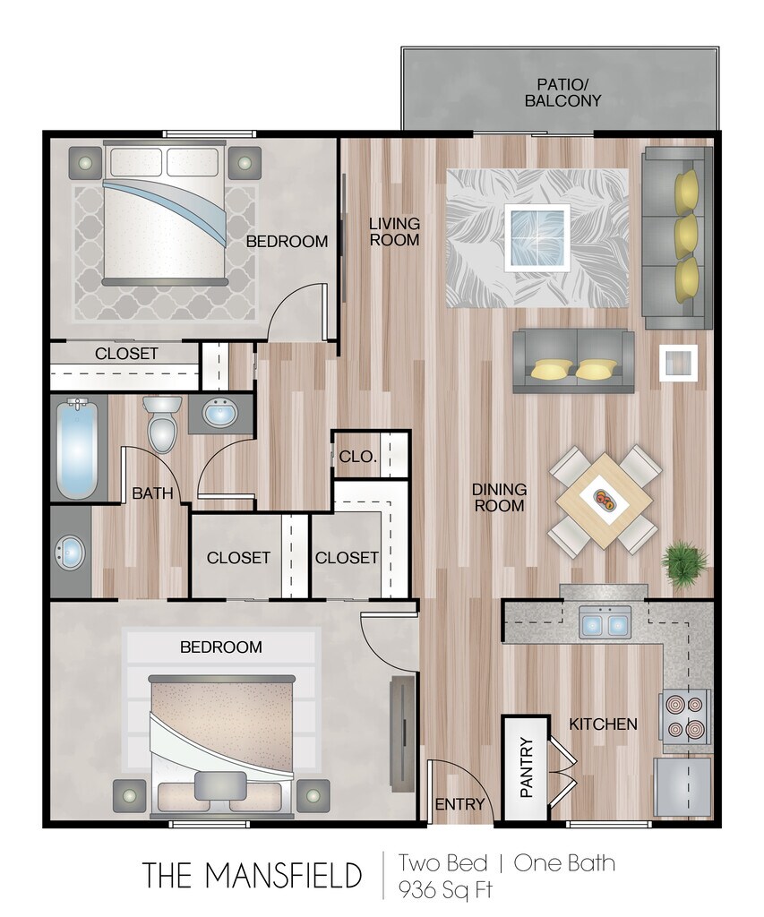 2 Beds, 1 Bath, 936 sq ftAvailable NowModel Gallery