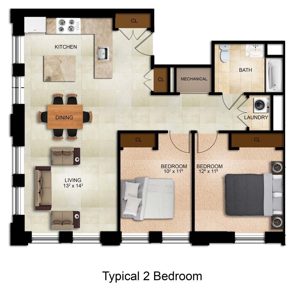2 Beds, 1 Bath, 997 sq ftAvailable NowModel Gallery