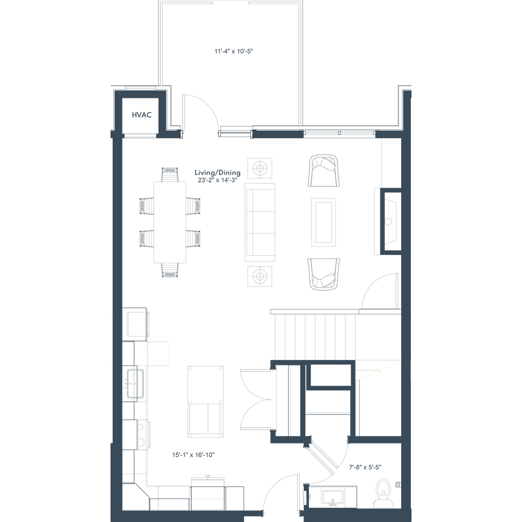 1 Bed, 1 Bath, 726 sq ftModel Gallery