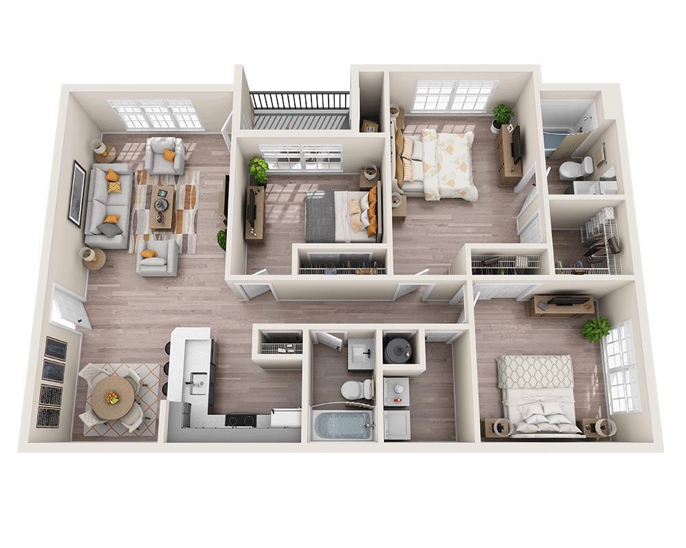 1 Bedroom to 3 Bedroom Apartments at Carrington Hills currently range from $1,443 to $2,198