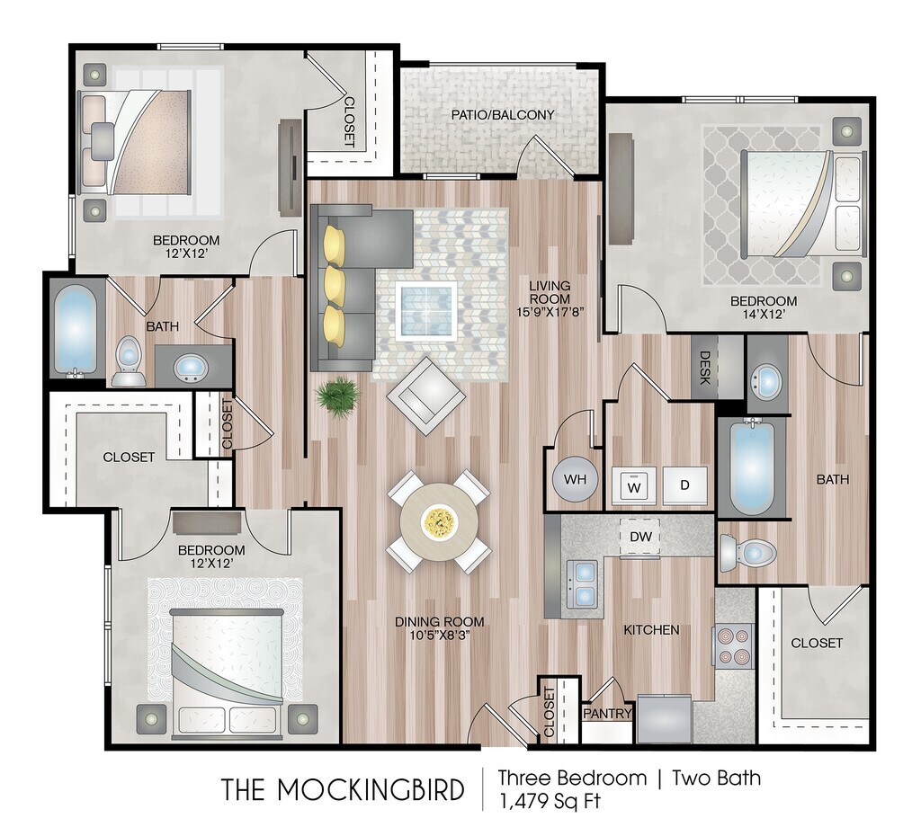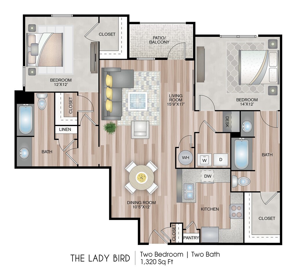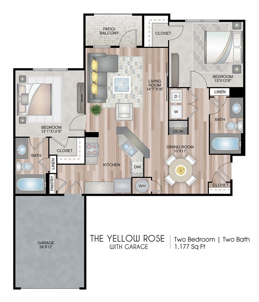 2 Beds, 2 Baths, 1177 sq ftAvailable NowCheapest 2 BedroomThis is the cheapest 2 Bedroom at this PropertyModel Gallery