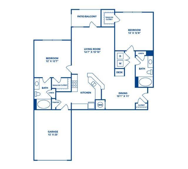 2 Beds, 2 Baths, 1324 sq ftLargest 2 BedroomThis is the largest 2 Bedroom at this PropertyModel Gallery