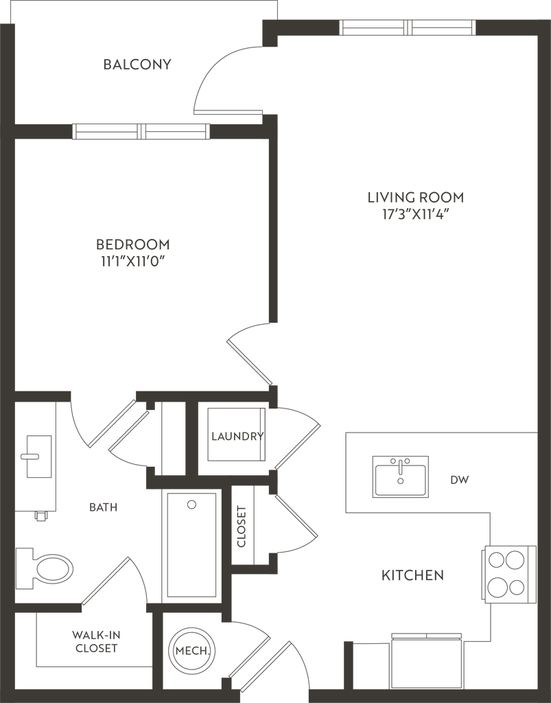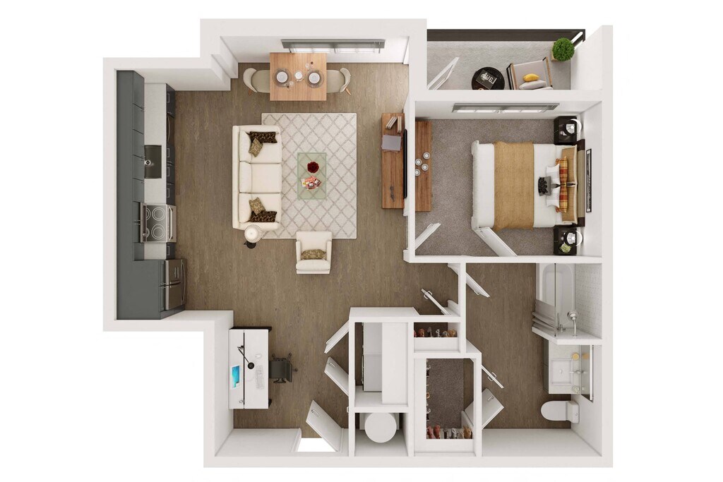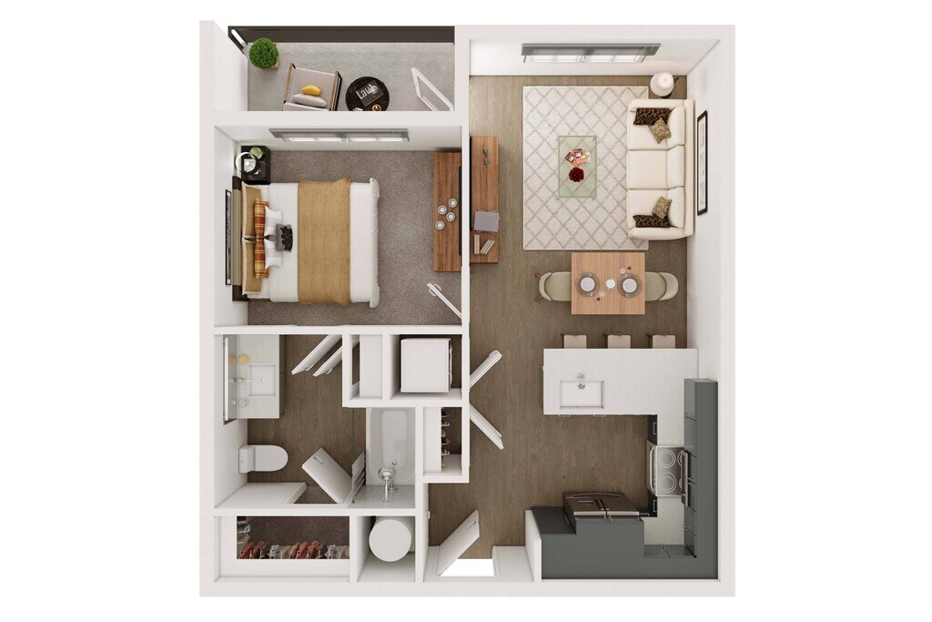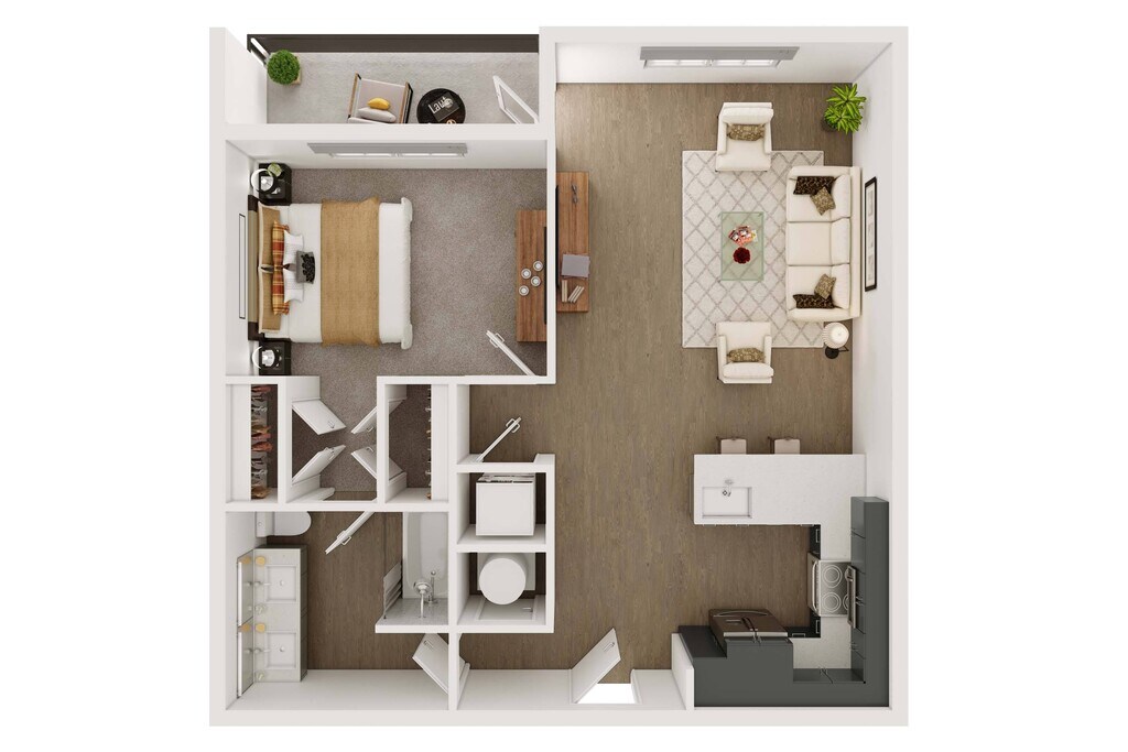Studio, 1 Bath, 505 sq ftAvailable January 1, 2026Largest StudioThis is the largest Studio at this PropertyModel Gallery