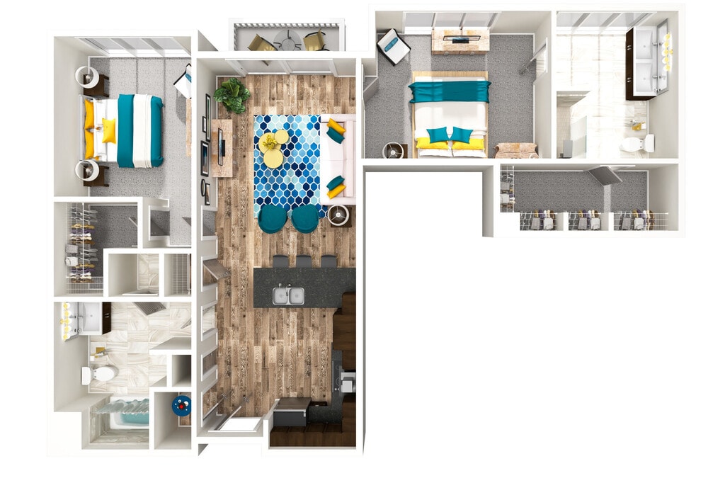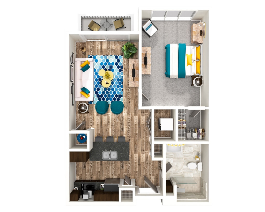 1 Bed, 1 Bath, 718 sq ftAvailable NowLargest 1 BedroomThis is the largest 1 Bedroom at this PropertyModel Gallery