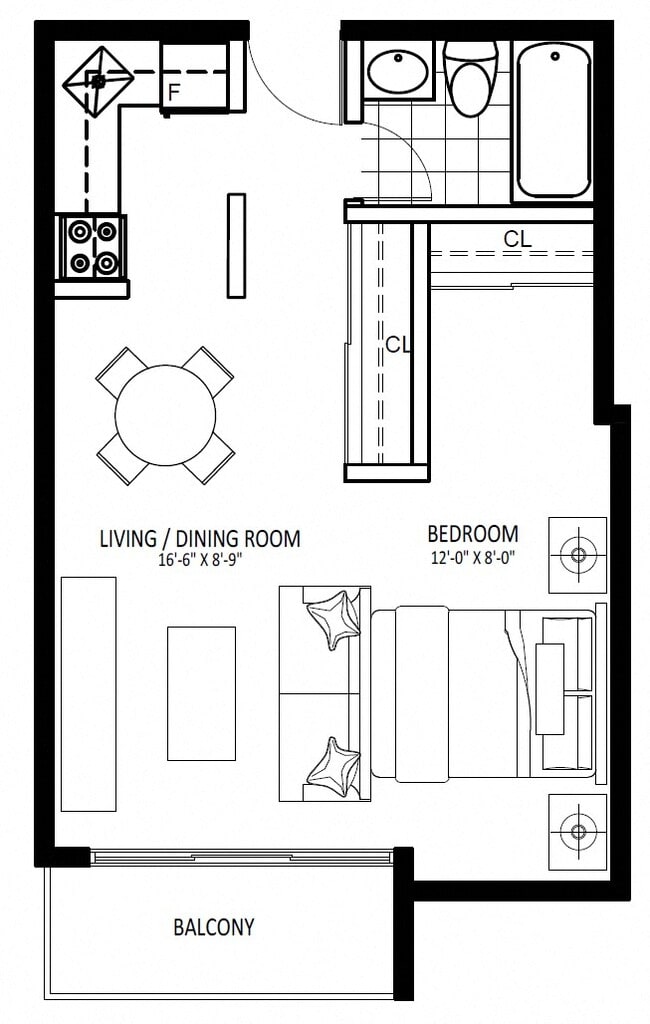Studio, 1 Bath, 417 sq ftAvailable NowModel Gallery