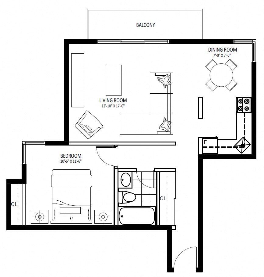 1 Bed, 1 Bath, 628 sq ftAvailable NowModel Gallery