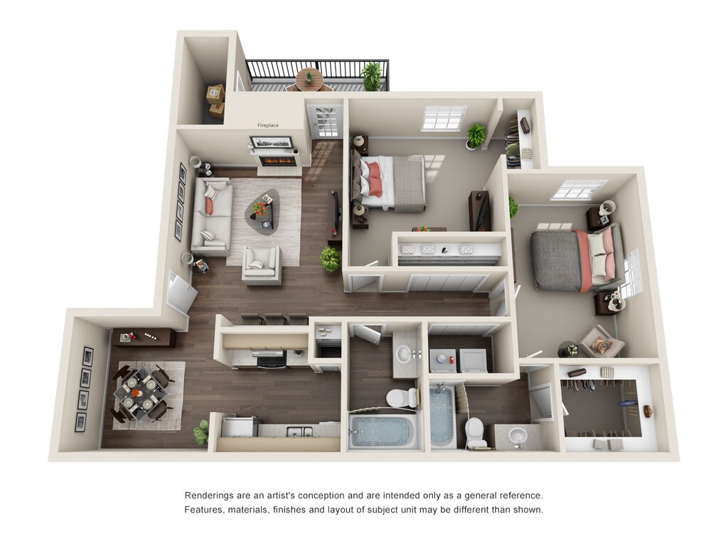 2 Beds, 2 Baths, 1012 sq ftModel Gallery