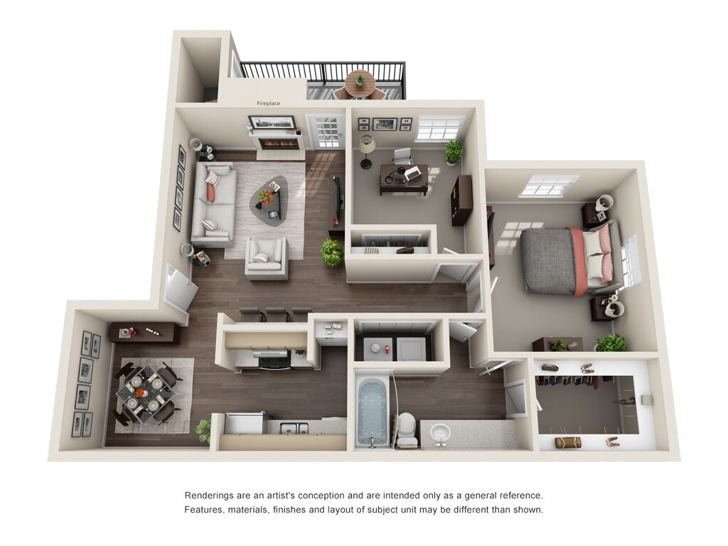 1 Bed, 1 Bath, 742 sq ftModel Gallery