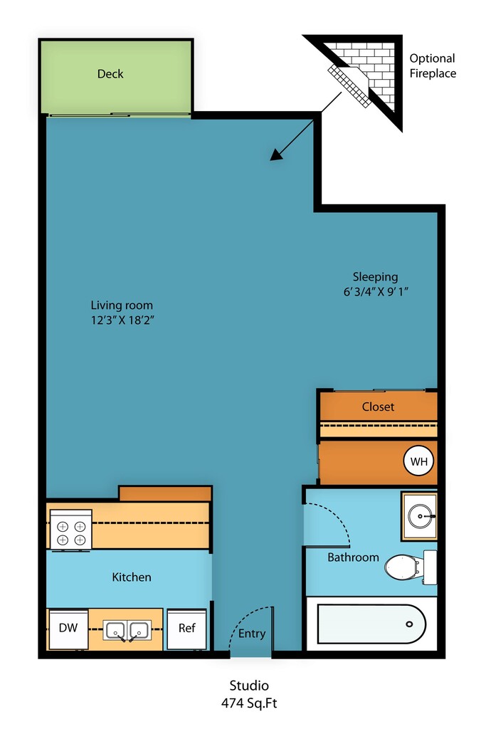 Studio, 1 Bath, 425-516 sq ftAvailable NowModel Gallery