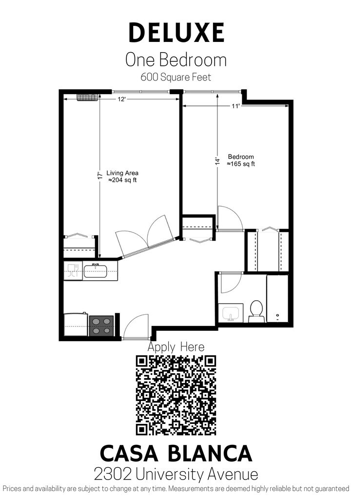 Apartment Model: 1BD DeluxeFrom $1,3991 Bedroom, 1 Bath, 600 sq ftAvailable August 20, 2026FloorplansPhotos![]()