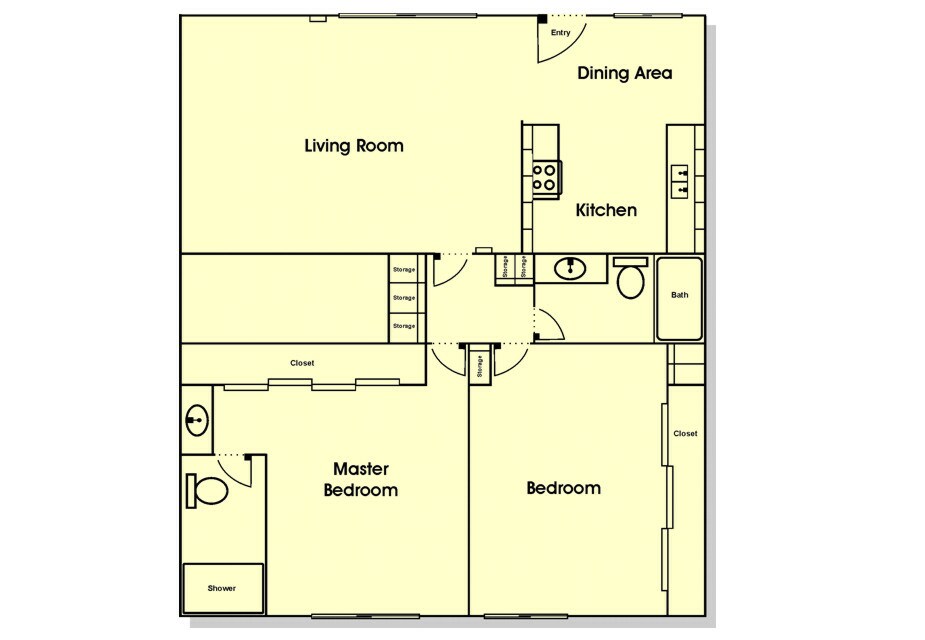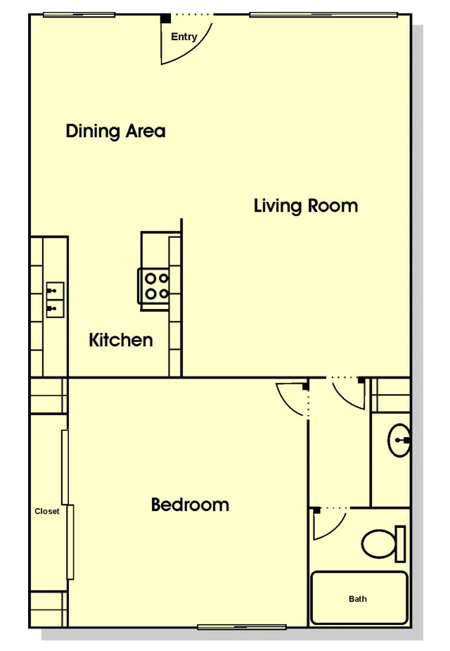 1 Bedroom - Large (E) - Floorplan 1 1 Bedroom - Outside Vanity (A)
