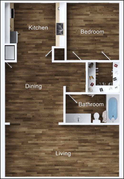 1 Bed, 1 Bath, 670 sq ftAvailable NowModel Gallery