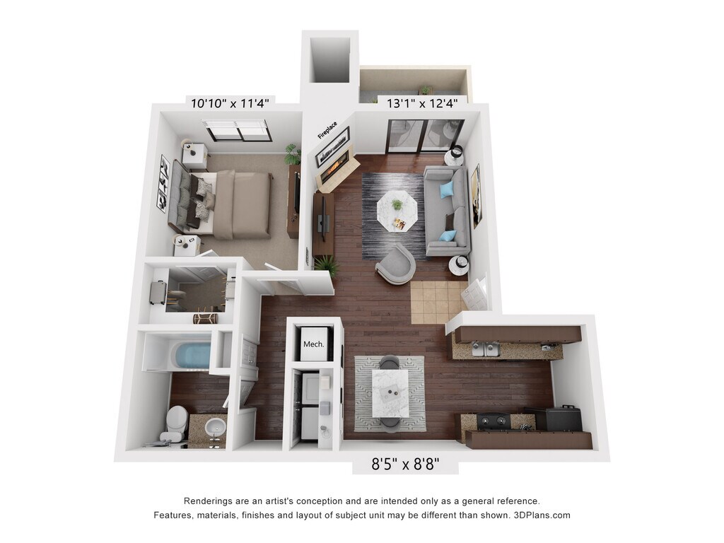 1 Bed, 1 Bath, 652 sq ftModel Gallery