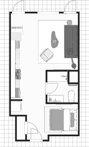 Premium 0BR/1.0BA - Floorplan 1 Standard 0BR/1.0BA