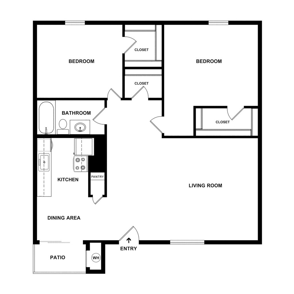 Apartment Model: Two Bedroom One Bath Deluxe$1,7922 Bedroom, 1 Bath, 850 sq ftAvailable Now![]()