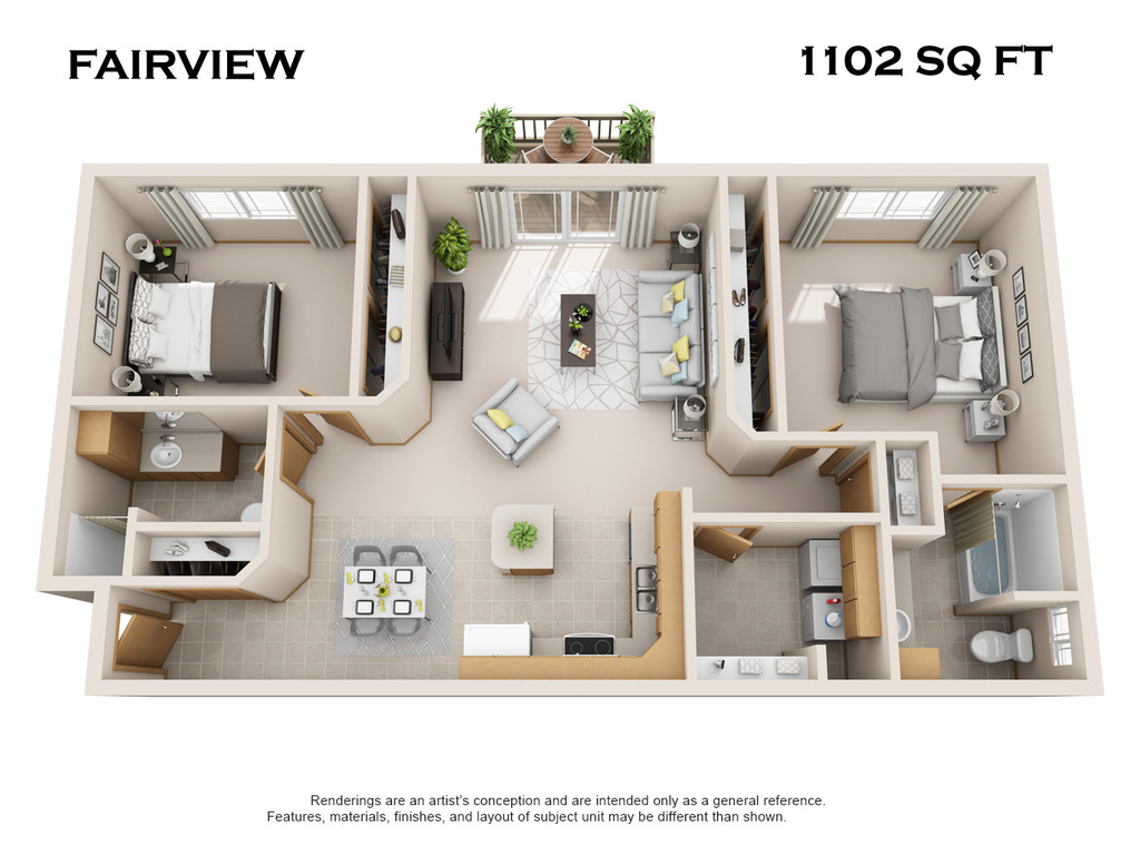 Apartment Model: FairviewFrom $1,2502 Bedroom, 2 Bath, 1102-1156 sq ftAvailable November 10, 2025![]()
