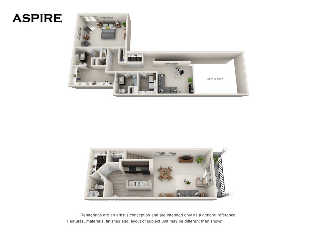 Aspire - Floorplan 1 Apartment Unit: 176LoftApartment Model: Aspire$1,3501 Bedroom, 2.5 Bath, 1573 sq ftAvailable Now2 Bedrooms