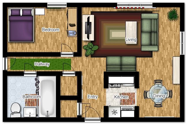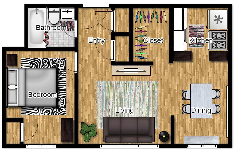 1 Bed, 1 Bath, 500 sq ftModel Gallery