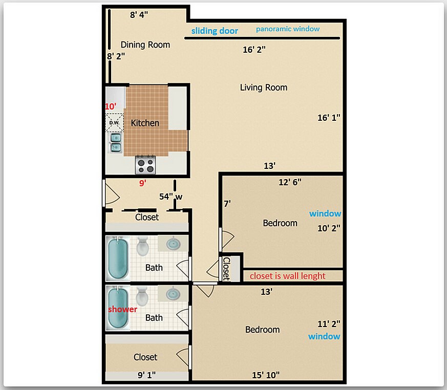Norte Standard 1BR (1x1A) - Floorplan 1 Norte Standard 1BR - (1x1B) "F"