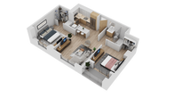 2 Beds, 1 Bath, 856 sq ftModel Gallery