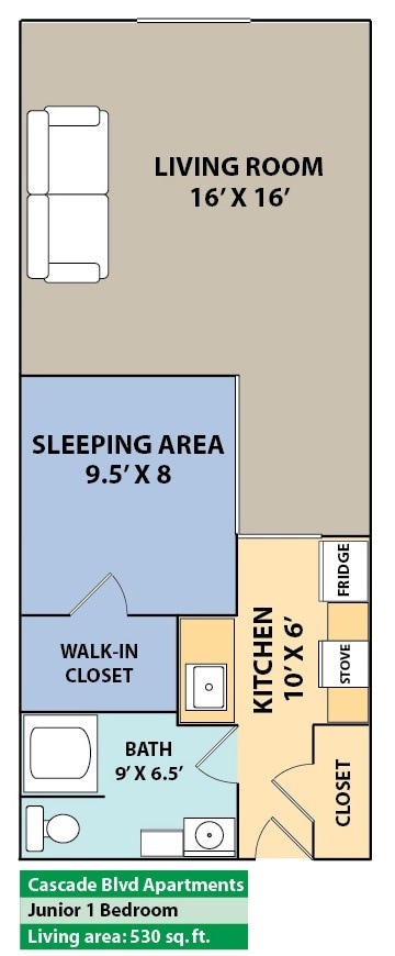 Studio, 1 Bath, 530 sq ftAvailability Details