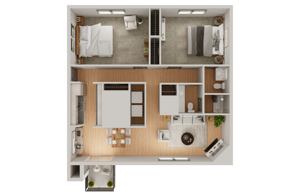 2 Beds, 1.5 Baths, 970 sq ftModel Gallery