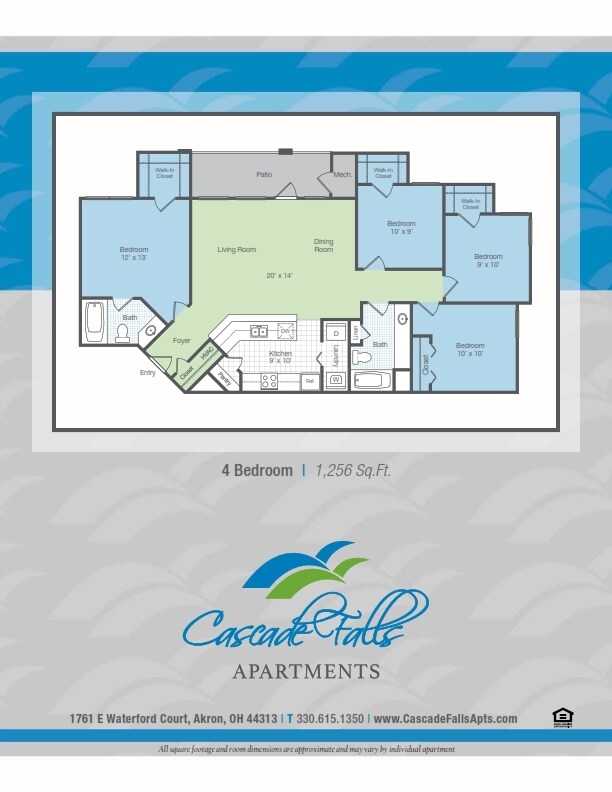 Cascade Falls offers 1 to 4 Bedroom apartments starting from $1,155 and having 694–1,256 sq ft. Here is the current pricing and availability: