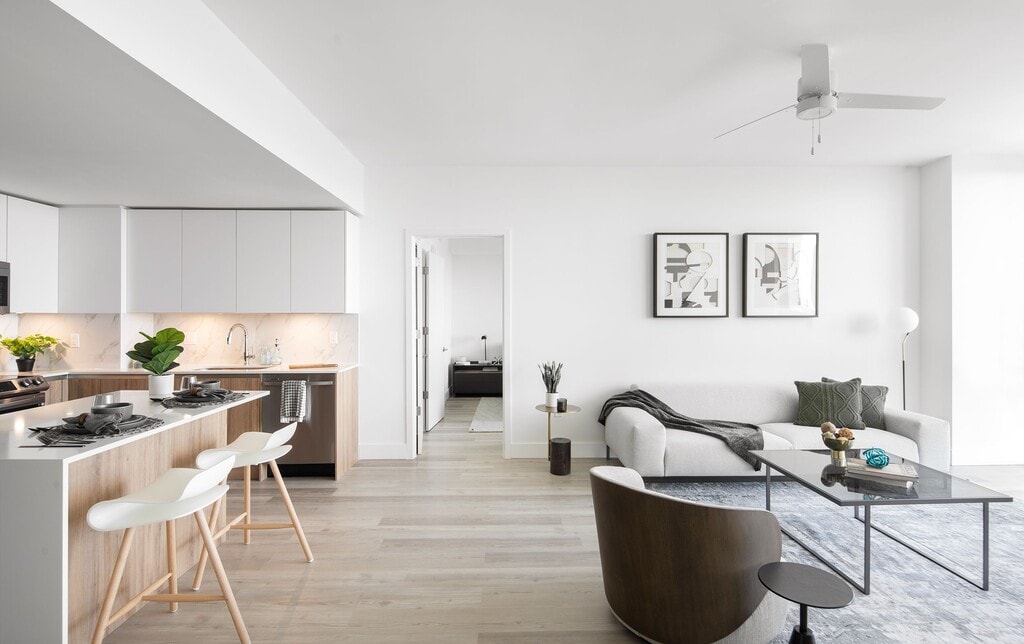 Experience the height of luxury at Cascade at Link. Each residence is thoughtfully designed to elevate everyday life. Enjoy kitchens with modern stainless-steel appliances, stone-wrapped islands, and elevated cabinetry, all bathed in abundant natural light. Floor-to-ceiling windows offer breathtaking bay and city views, while curated details like an in-home washer, dryer, and vertical pantry add convenience. Start your day on a high note by stepping out onto your inboard balcony and enjoying the view. Soak in the panoramic views from our 10th-floor amenity deck featuring an expansive pool, outdoor cinema, and basketball half-court. Enjoy an equipped business center, state-of-the-art fitness center, and comfortable social club. Your furry friends are not left out with a designated dog run and wash. Dine al fresco at our grilling stations or unwind in our stylish game room. At Cascade, it's easy to start your day with a smile.