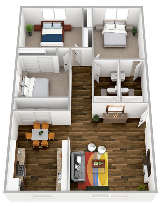 3 Beds, 2 Baths, 1008 sq ftModel Gallery