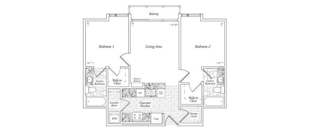 2BR/2BA - Floorplan 9 3 Bedrooms