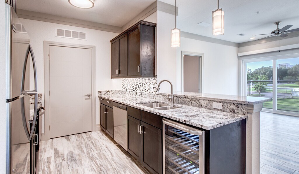 Cascades is now leasing for Fall 2020 move-in! Cascades is a brand-new luxury apartment community offering studio to four bedroom floorplans just steps from the University of Florida campus and Sorority Row. Inspired by the tranquil cascading waterfalls and crystal-clear blue lagoons of the world’s most tropical destinations, Cascades’ upscale amenities and luxe interiors transform the apartment community into a resort-style oasis, providing an unparalleled student living experience in Gainesville. Cascades is overflowing with deluxe community amenities rarely seen in traditional student apartments in Gainesville, including a rooftop lounge, a flowing multi-tiered fountain beside a sunbathing patio and garden area, and common study rooms. Inside of the apartments themselves, elegant design finishes provide residents with the utmost comfort. Each apartment includes gourmet kitchens with granite countertops, stainless steel appliances, and built-in electric wine chillers; luxury bathrooms with granite-topped vanities and full-size tubs with porcelain tile surround; and crown molding in the living room. These luxury units are almost full for Fall 2020 move-in - reserve your spot now have guaranteed housing in one of the most luxurious apartments in Gainesville!