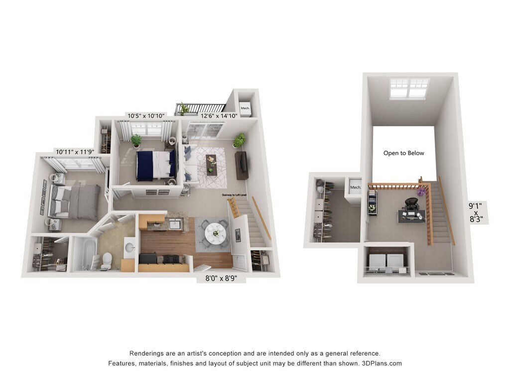 1 Bed, 1 Bath, 891 sq ftModel Gallery