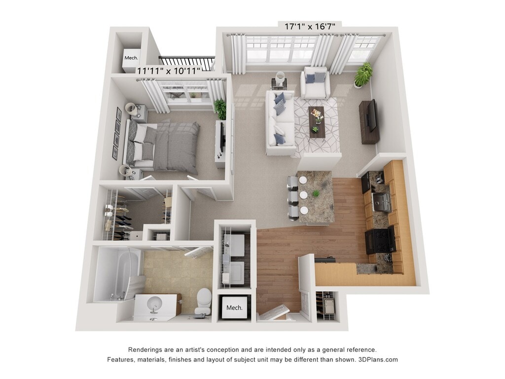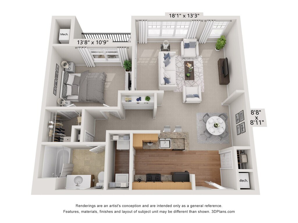1 Bed, 1 Bath, 803 sq ftModel Gallery
