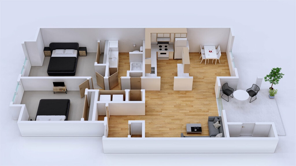 2 Beds, 1 Bath, 1021 sq ftAvailable NowModel Gallery