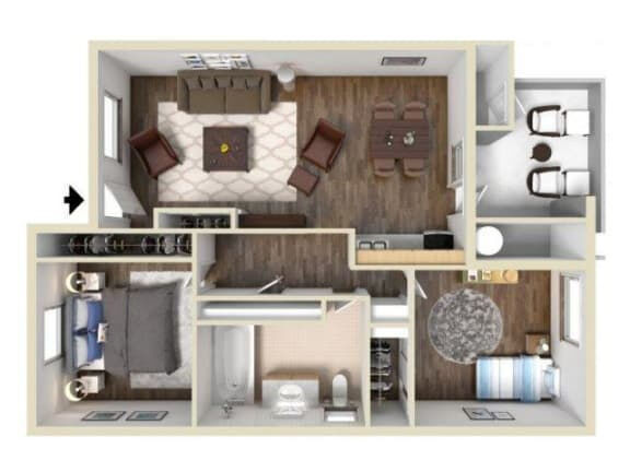 2 Beds, 1 Bath, 775 sq ftAvailable NowModel Gallery