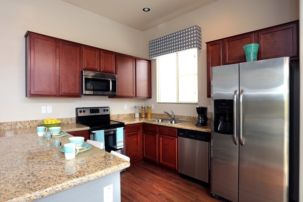 In the heart of Chandler, you will find your new home has or is near all you could need. Casitas at San Marcos offers gorgeous apartment homes with a single-family home feel. Granite countertops and stainless steel appliances will make time in the kitchen feel like a culinary delight. Private backyards, wood-style vinyl plank flooring, and available garages top off the feel of polished living. As you stroll through the community you will discover activity paths, beautifully landscaped courtyards, and a recreation area for fun. Yes, we have cornhole games and a putting green!If relaxation is your vibe, take a dip in our crystal pool or soak in the spa, no matter your mood, Casitas at San Marcos can match how you feel.