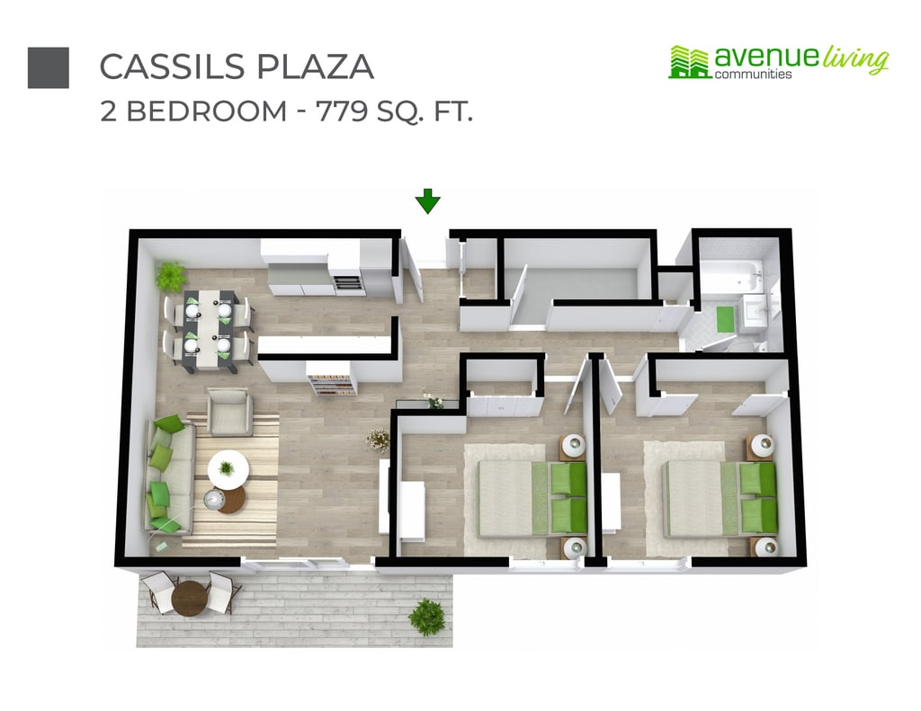 Apartment Model: - 2 Bedroom2 Bedroom, 1 Bath, 779 sq ftAvailable Now![]()