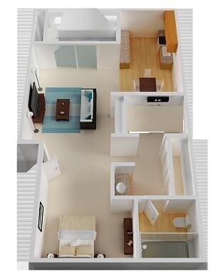 Apartment Model: One Bedroom - Open KitchenFrom $2,3201 Bedroom, 1 Bath, 720 sq ftAvailable Now![]()