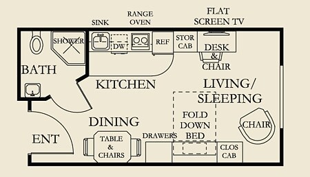 Studio, 1 Bath, 300-350 sq ftAvailable NowModel Gallery
